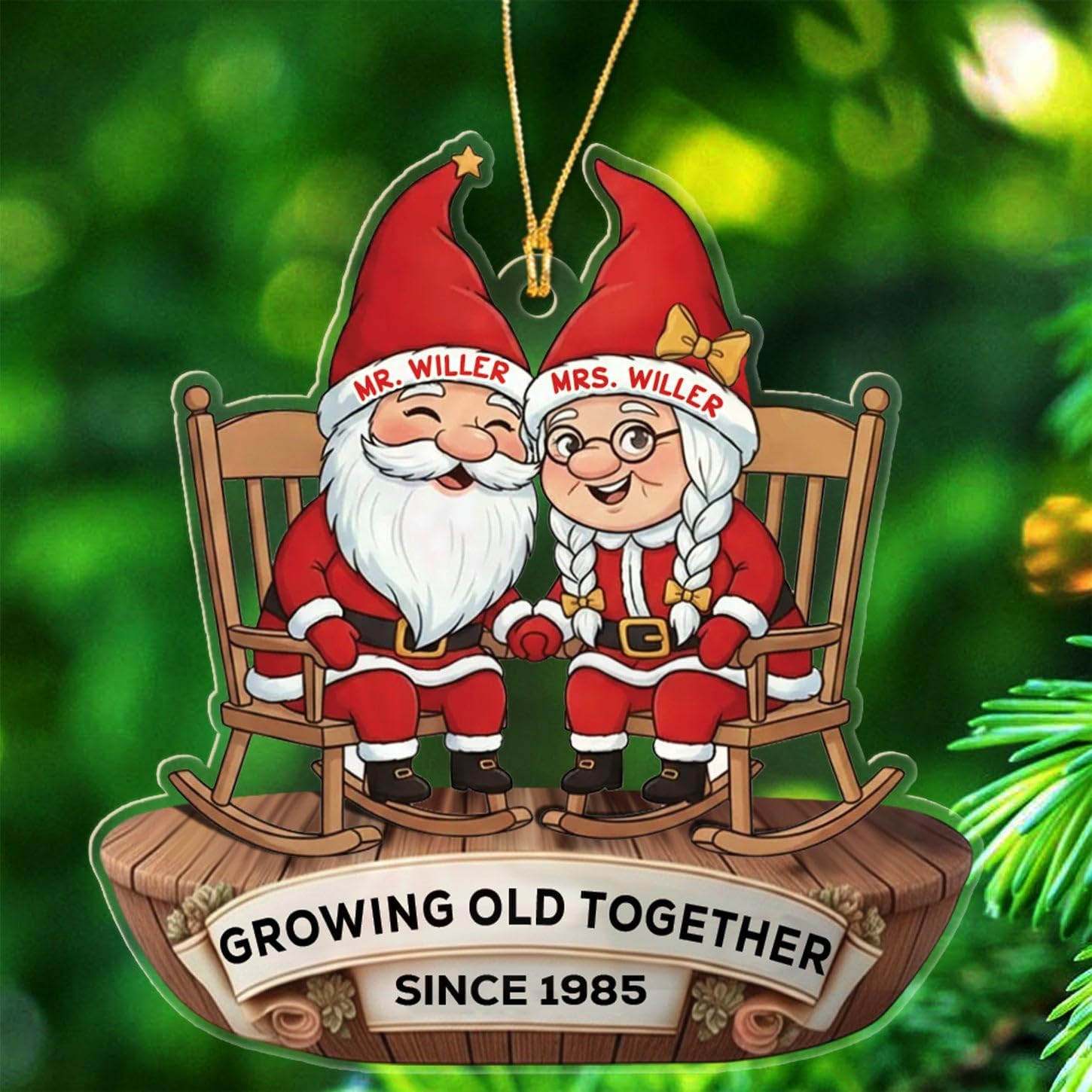 - PERSONALIZED CHRISTMAS ORNAMENTS: This "Old Couple Gnome Sitting On Rocking Chairs Growing Old Together Since" custom ornament is specially designed for an Old Couple, Husband and Wife, Boyfriend and Girlfriend, Him and Her, Bride and Groom, Mr & Mrs, Newlyweds, Dad Mom, Parents, Grandparents. Click on the " Customize Now " button to make your ornament special by customizing it to your liking.