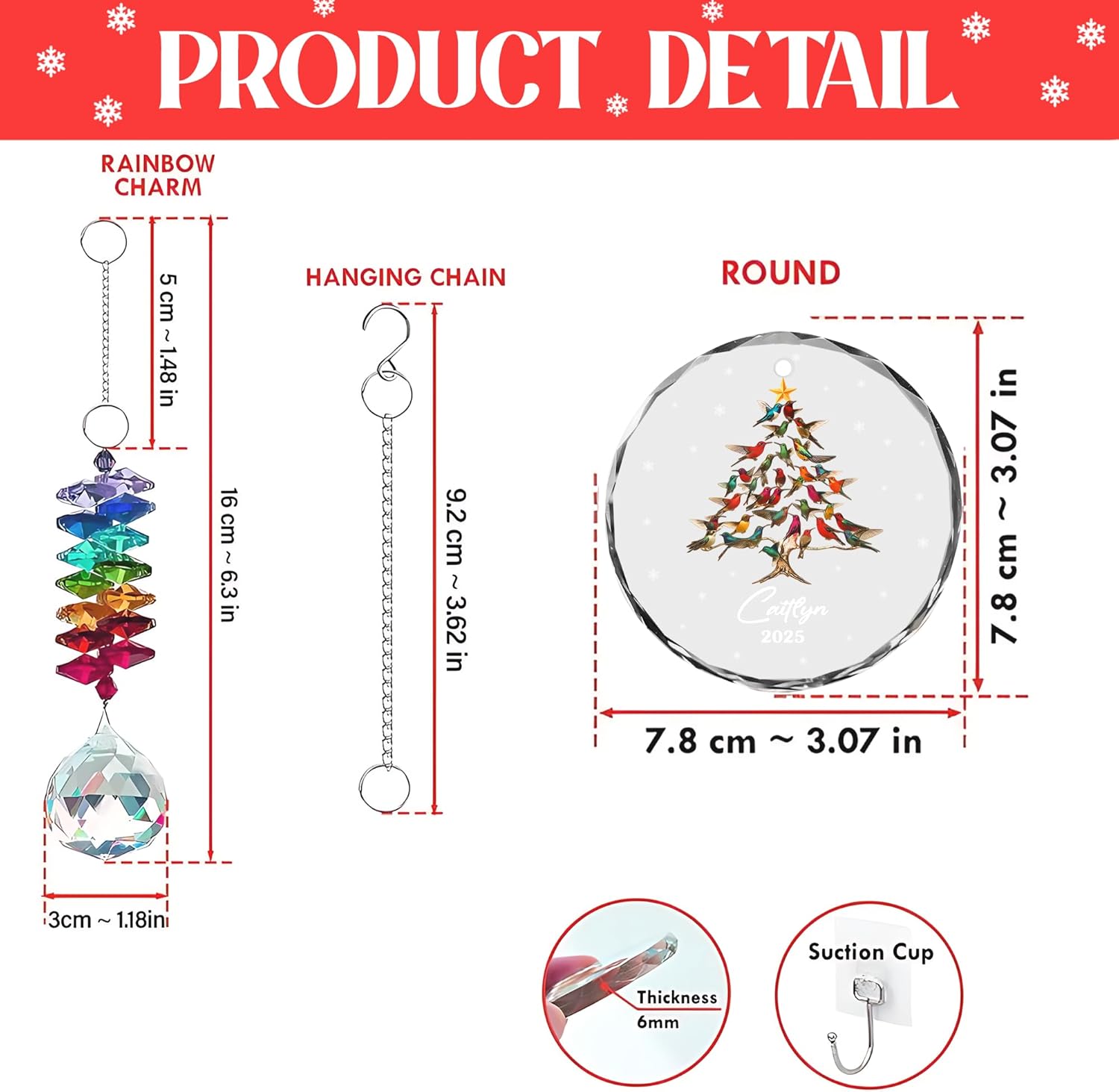 Personalized Christmas Ornament – Custom Holiday Tree Design with Birds – Custom Name 2025 – Glass Christmas Tree Ornament with Suncatcher