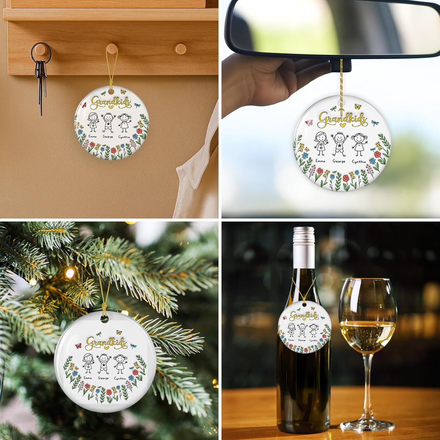 Grandkids Personalized Ceramic Ornament – Grandkids Christmas Ornament, Custom Holiday Keepsake, Family Tree Gift